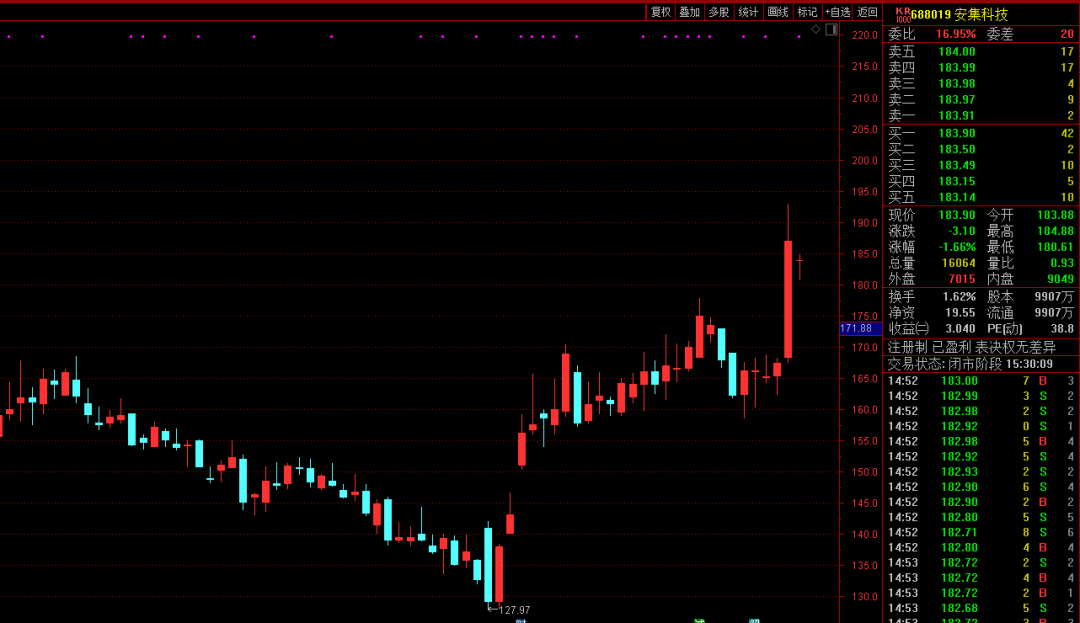 二级市集上,10月13日,安集科技股价下落1.66%,收于183.9亿元,面前市值约182亿元。本年以来,安集科技股价总体飞腾约33%。